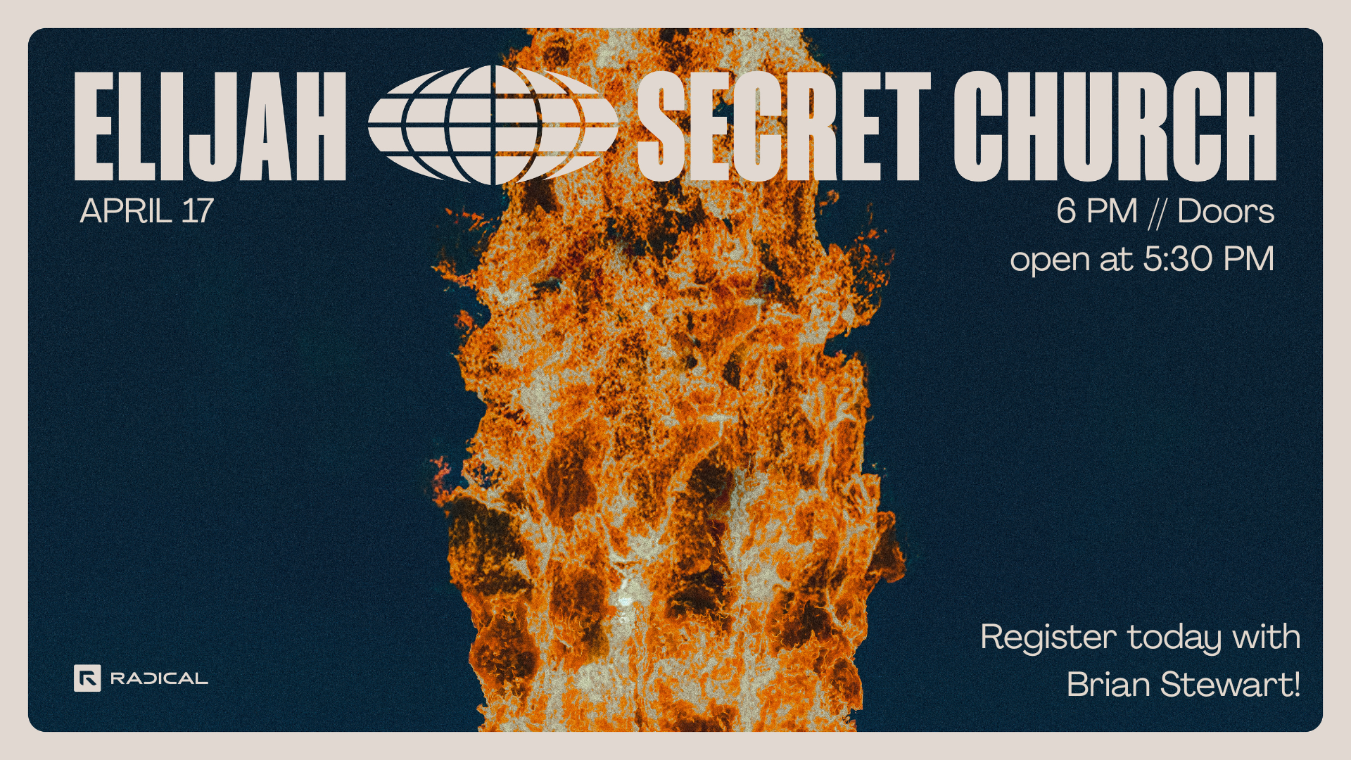 This is a simulcast event typically attended by more than 50,000 believers worldwide in dozens of countries. Come learn more about the persecuted church, pray, and enjoy an intense study of Elijah! Light refreshments will be provided and the doors will open at 5:30pm. Please register today with Brian Stewart.